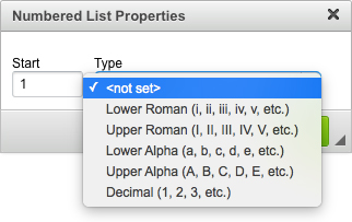 Select "Numbered List Properties". A popup window called "Numbered List Properties" will appear: