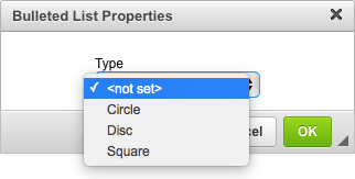 Select "Bulleted List Properties". A popup window called "Bulleted List Properties" will appear: