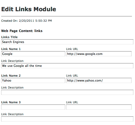 Use the Links Module to display a nicely ordered list of links. Each Links Module lets you add up to 15 links per module.