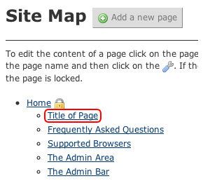 Within the Site Map you can select "Add a new page". Fields marked with a red asterisk must be completed.