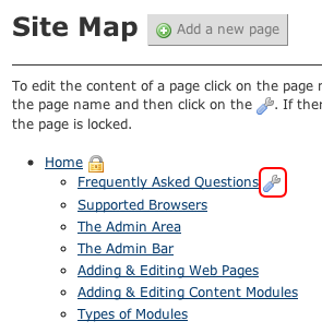 Within the Site Map you may click on the wrench icon next to a page to edit its title and/or relationship within the navigation.